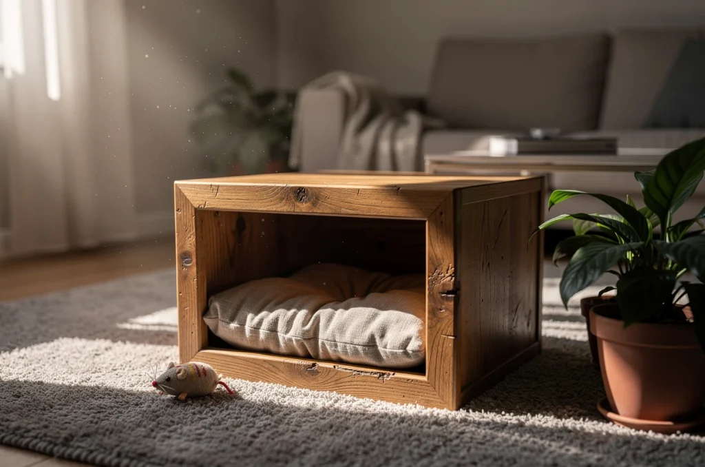 Les cubes ou les petites cavités permettent au chat d’alterner entre observation et méditation. Leur structure autorise souvent une installation en hauteur, sur une étagère robuste par exemple. Placer ce style d’abri près d’une fenêtre sécurisée satisfait le besoin de surveillance chez les plus curieux.